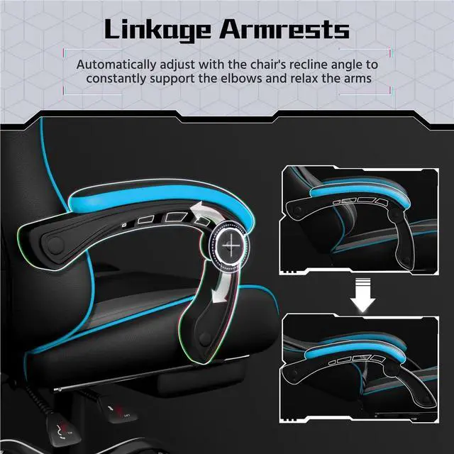 - Massage Lumbar Cushion and Extendable Footrest: The lumbar pillow includes a massage function activated by a USB switch to help ease fatigue, while the fold-out cushioned footrest provides added relaxation; a back pocket keeps the cable and small essentials organized
