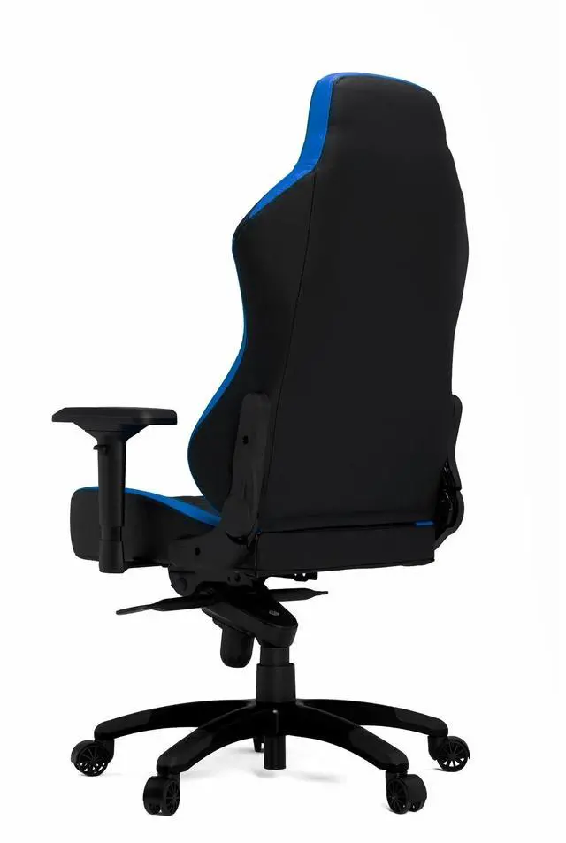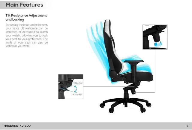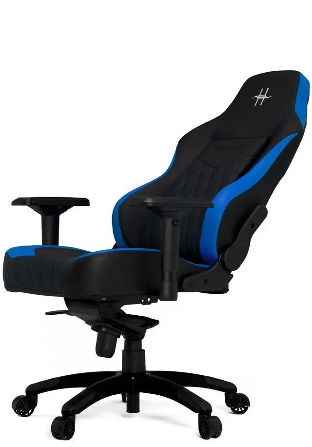 From PC games to VR, immerse yourself in any adventure while sitting in this HHGears XL 800 gaming chair. The ergonomic design is easy to adjust to your comfort level, so you can feel at ease during long and short playing sessions. Overall Dimensions: 51-7/8"H x 22-3/8"W x 19-9/16"D. Weight capacity tested to support 350 lb. Seat is padded with cold-cure foam for lasting cushioning. Waterfall seat cushion slopes slightly downward to help reduce stress on your legs. Ergonomic headrest pillow and lumbar cushion let you play in comfort. Lumbar pillow supports your lower back and enhances the natural curve of your spine. Crafted with a steel frame and an aluminum-alloy base. Faux leather gives the chair a stylish appearance. Height-adjustable seat is easy to raise and lower thanks to the Class 4 gas lift. Backrest tilts from 80° to 135°. Tilt resistance adjustment locks securely in place. Padded armrests can rotate and move up, down, forward and backward to suit your needs. Silent rubber casters glide smoothly over most floors. Meets and/or exceeds ANSI/BIFMA performance standards. Assembly required. Blue accents and diamond-patterned stitching add style.