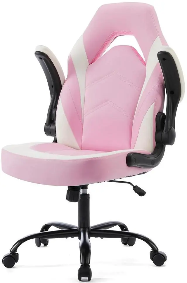 DIXSG gaming chair features a comfortable design with multi-line elements and a hollowed-out back made of breathable PU leather. The cushion is thick and contoured to fit the curve of the hip, and the two-color combination design adds visual appeal. The chair helps you find a relaxed sitting position for long gaming or work sessions. It has adjustable height and flip-up armrests for space-saving convenience. Constructed of sturdy chrome-plated metal, it can support up to 275 lbs and features pentagonal casters for stability and mobility. Weighing only 30 pounds, it is portable and versatile for entertainment, movie-watching, work, and rest.