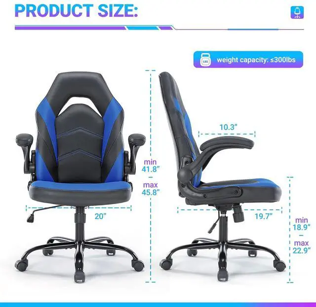 This DIXSG Video Game Chair matches the 29th and 30th models, with an S-shaped backrest, 300lb capacity, and racing-style design. It offers lumbar support for spine health and padded seating for comfort during long gaming sessions. Durable and stylish, its a practical choice for game rooms or home offices where users spend hours gaming.