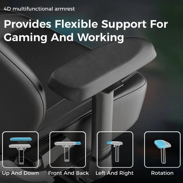 Magnetic Memory Foam Head Pillow: We have further enhanced our pillows to bring more flexible adjustment and the utmost comfort for our users. The specially designed magnets have been seamlessly embedded within the pillow, enabling it to be adjusted over a significantly wider range. With its winged design and slow-rebounded memory foam, it keeps your head in a perfectly neutral position. It provides additional ergonomic support and pressure relief for your head and neck. Our carefully crafted design, with its magnetic prowess, will ensure that your headrest stays firmly in place, giving you the peace of mind you deserve. 2D Integrated Lumbar Support: 2D integrated lumbar support fits the curve of your spine. Turning the adjustment knob in a clockwise or counterclockwise direction increases or decreases the lumbar support's depth.Multi-functional Tilt Mechanism: The multi-functional tilt mechanism allows you to sit at preferred angles and lock the seat in your perfect position for gaming or unwinding. 4D Armrest: The 4D adjustable armrest offers dynamic support for your forearms and alleviates pressure from your shoulders by adjusting to your posture needs. 90°~135° Reclining Backrest: Craft Series offers a reclining angle of 90 to 135 degrees to accommodate users' sitting posture preferences. It's ideal to enable the rocking mode for those times when you want to unwind, watch TV or take a nap.Extra Wide and Thick Seat Base: The extra wide and thick seat base not only provides you with ample room for comfort but is also durable and hard-wearing. The slow-rebound memory foam helps alleviate soreness and pressure on your hip, allowing long hours of seating comfort. Neither too hard nor too soft.