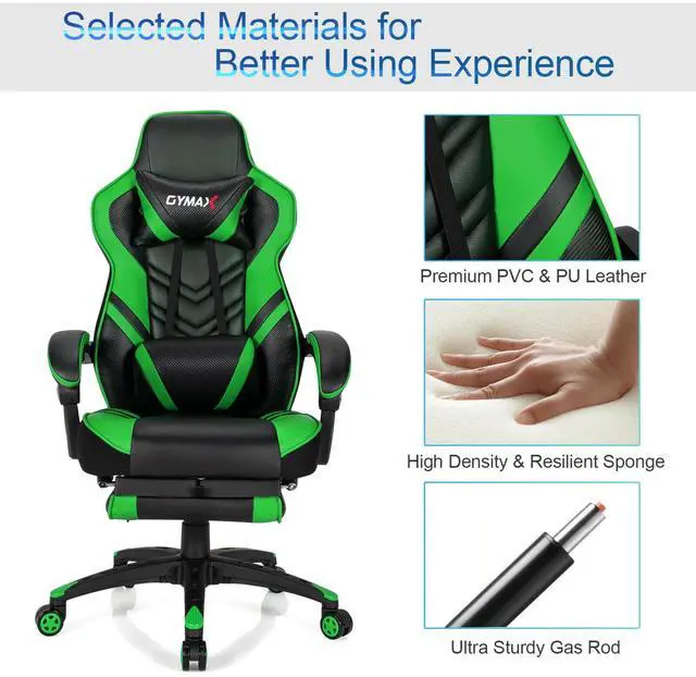 - Ergonomic Design for Comfort: Thick sponge padded cushions plus soft PU and PVC leather provide ultimate comfort. The high backrest, comfy headrest and waist pillow can give strong support for your body, reducing fatigue after sitting for a long time. Additionally, the retractable footrest is designed for you to take a nap when you're tired.