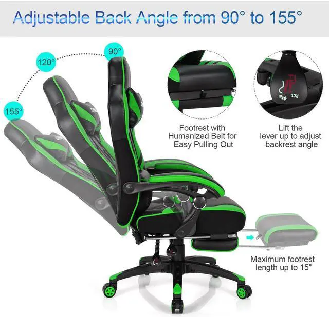 - 90°-155° adjustable backrest meets the needs of gaming, working, etc