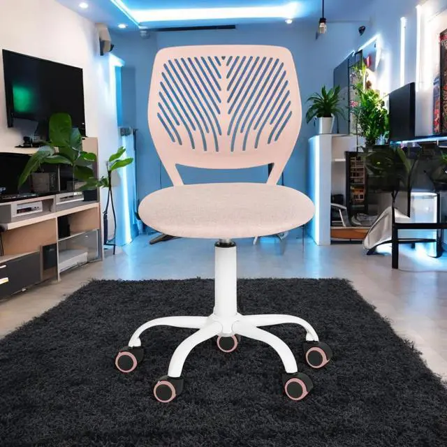 - Adjustable Height & 360° Swivel Easily customize the seat to your desk setup using the pneumatic lift, while the smooth swivel base gives you full freedom of movement. Soft Gamer Aesthetic Blush pink tone with a modern curved cut-out back brings charm and personality to any gaming space, study nook, or content creation corner. Compact for Any Setup Perfect for dorm rooms, bedroom vanities, or home offices, the slim design tucks neatly under desks when not in use. Multi-Use Functionality Whether you're gaming, streaming, studying, or doing your makeup, this chair supports a variety of daily tasksideal for teens, students, and style-conscious creators.
