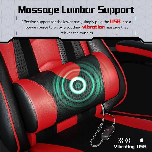 - Massage Lumbar Cushion and Extendable Footrest: The lumbar pillow includes a massage function activated by a USB switch to help ease fatigue, while the fold-out cushioned footrest provides added relaxation; a back pocket keeps the cable and small essentials organized