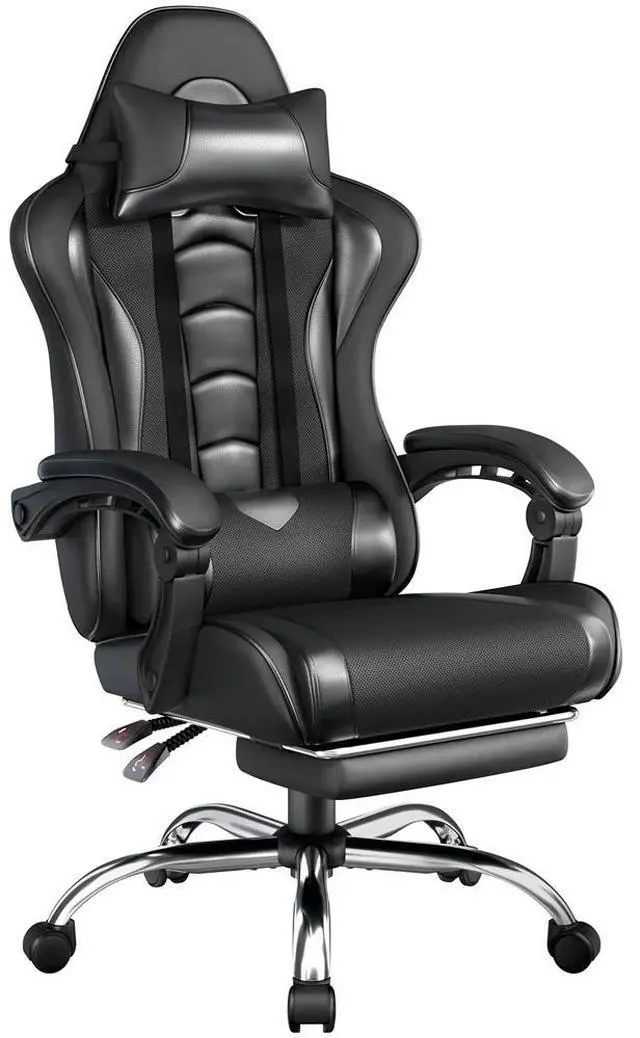 - Alden Design Ergonomic High Back Gaming Chair with Massage Lumbar Pillow and Padded Armrests, Black/Gray: