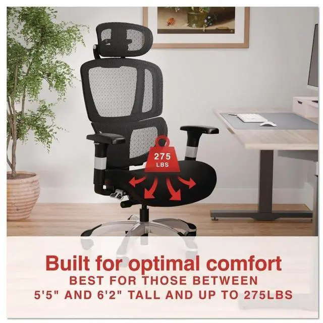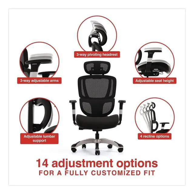Alera Minverva Pro Multifunction Chair, Supports Up to 275 lb, 17.7" to 21.4" Seat Height, Black