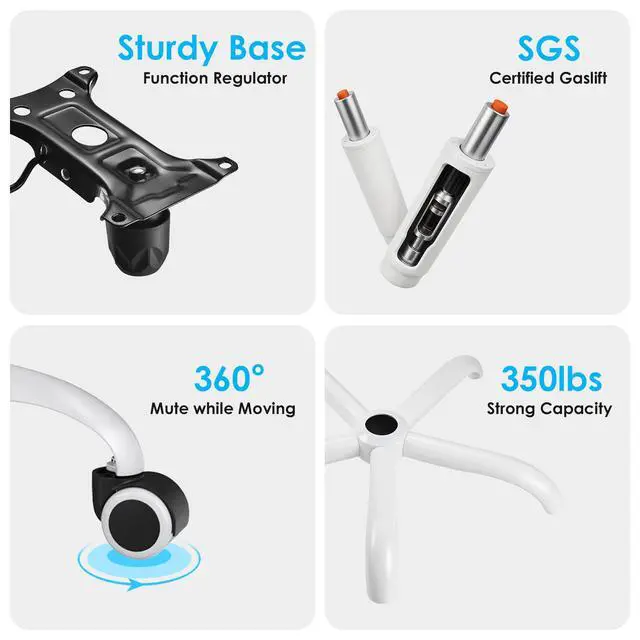 5, SAFE & ASSEMBLE - Don't worry about the safety of this home office desk chair. Our comfortable office chair is made of high-quality nylon and metal, also it is stable which can withstand 350 IBS. According to the instructions, installation can be completed in only about 15 minutes