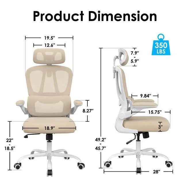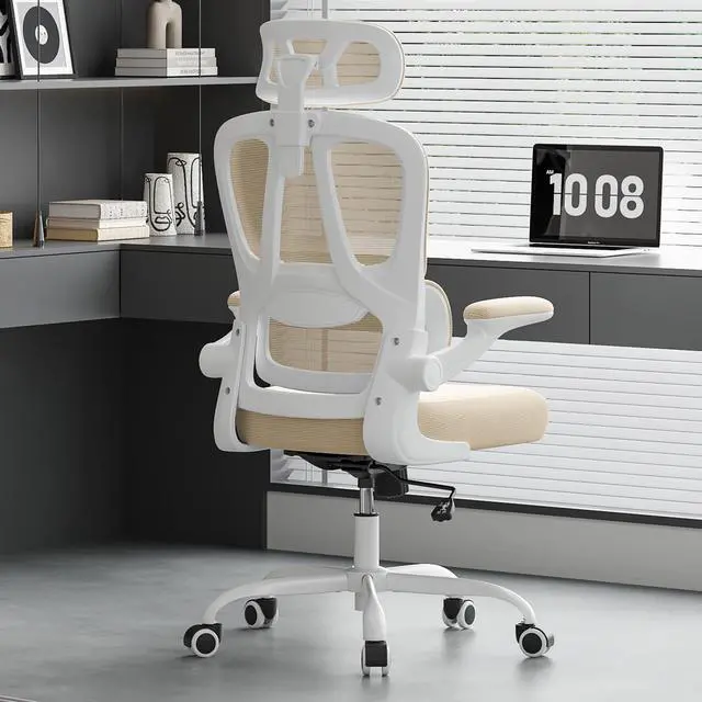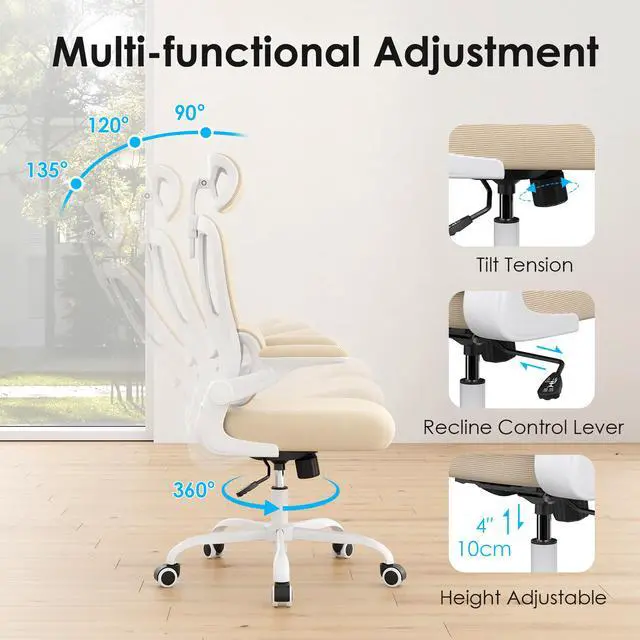 4, SAVING SPACE - Maximize your space with our versatile home mesh desk chair. Its flip up armrests allow for effortless storage, enabling you to neatly tuck the chair under your desk when not in use. This space-saving design makes our ergonomic chair a perfect fit for bedrooms, studies, gaming rooms, or offices, ensuring functionality without sacrificing valuable square footage