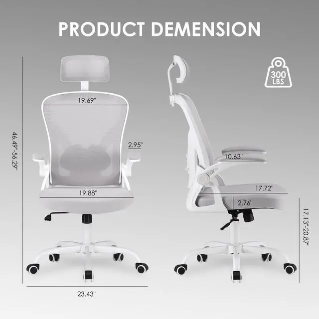 3, SAVING SPACE - The home mesh desk chair can save space for you, because the armrests of desk office chair could be flipped up to 90 degree, and then you can put your mesh office chair under the desk when it's not in used. So our ergonomic desk chair could be used in anywhere in your bedroom, study room and gaming room or office