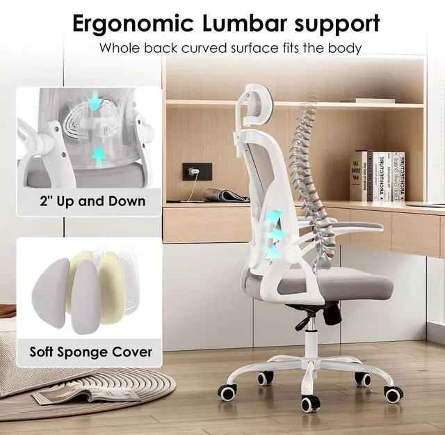 1, ERGONOMIC OFFICE CHAIR - Are you struggling with your office chair isn't comfortable? Congratulation, you find the most comfortable home office desk chair. This ergonomic office chair use an unique backrest to fit the natural ergonomic curve. Also the ergonomic mesh office chair has a adjustable lumbar support which can help you fix your sit position