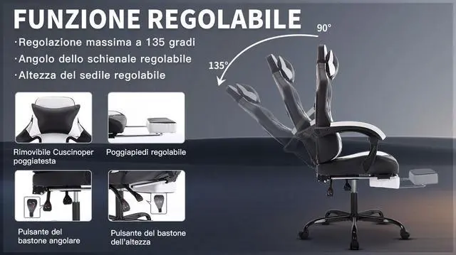 1, HIGH QUALITY MATERIAL Our high back gaming chair is thickly cushioned for maximum comfort and premium PU leather, Sponge and thick steel frame structure, whether youre spending on the office, or computer gaming. the chair is equipped with freely adjustable lumbar support and a headrest pillow to protect your spine and neck,