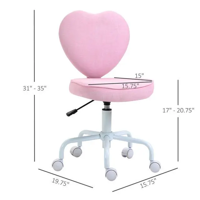 Heart Shape: The cute love heart-shaped appearance makes this pink desk chair a good partner for some younger users to study and play.