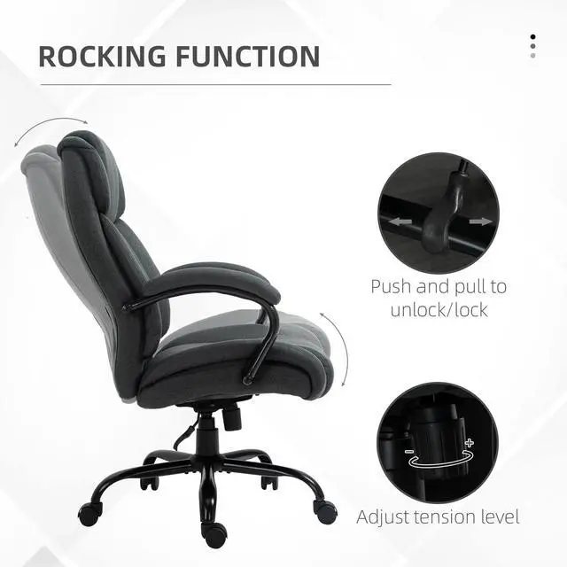 COMFORTABLE DESIGN: The backrest of this big and tall office chair is covered in linen-feel fabric for breathability while the thick sponge padded head, back, armrest, and seat is soft and comfortable for working at home.
