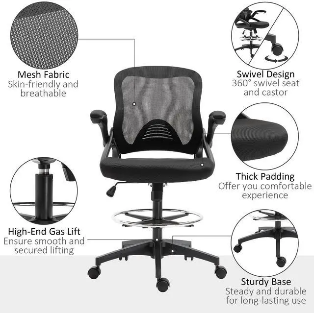 Thick Padding & Flip-Up Arms: The high-density foam padded tall chair seat is super comfortable, and the flip-up armrests allow for space-saving under your desk.