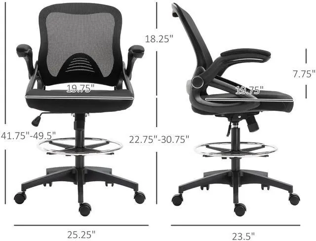 Adjustable: This drafting chair has adjustable seat and footrest heights, tilt tension, and 360 swivel wheels that offer comfortable convenience to work how you need it.