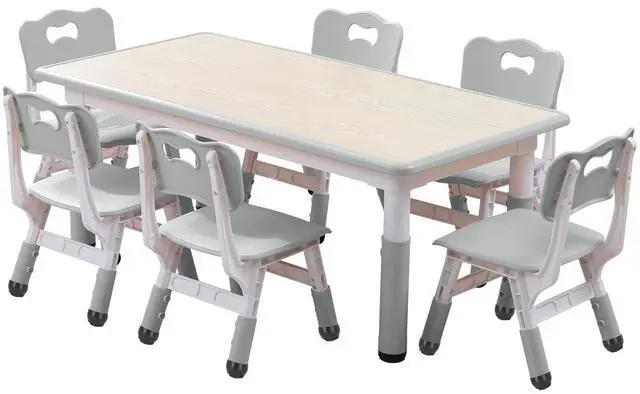 Kids Table and Chairs Set, Height Adjustable Desk With 6 Seats for Ages 3-12,Arts & Crafts Table,Graffiti Desktop, Non-Slip Legs, Max 300lbs, Children Multi-Activity Table for Classrooms,Daycares,Home