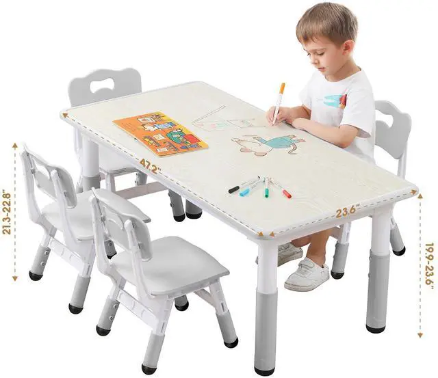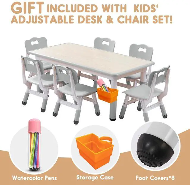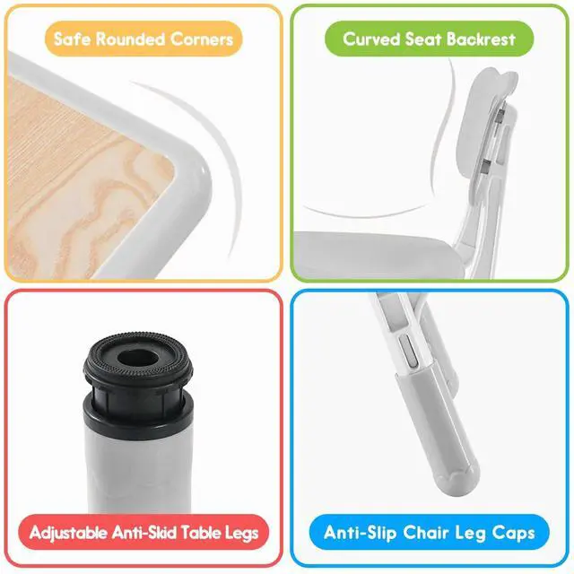 **Personalized Comfort Experience:** Adjustable height settings ensure comfort for different heights and body types of kids aged 2-8. With 7 table and 4 chair height levels, it perfectly suits children's growth stages, embodying value for money.