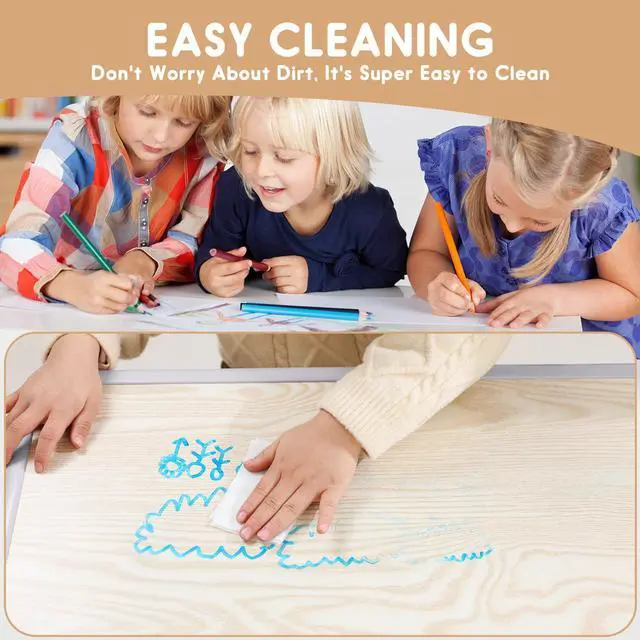 **Expanded Creative Space:** Measuring 47.2 x 28 x 28 inches, the table provides ample surface compared to traditional shapes. Ideal for kindergarten, classrooms, and homes, it allows kids to read, game, dine, and create art. Additionally, we offer 12 vibrant-colored brushes, allowing kids to unleash their creativity and create unique artworks - each child a future Van Gogh.
