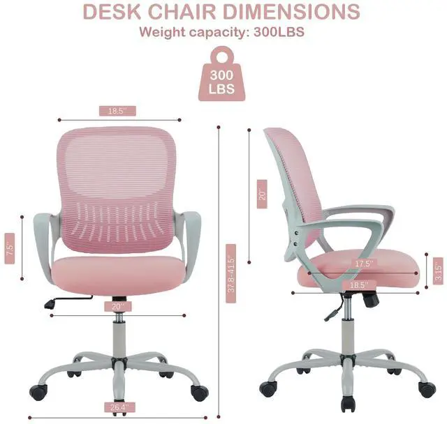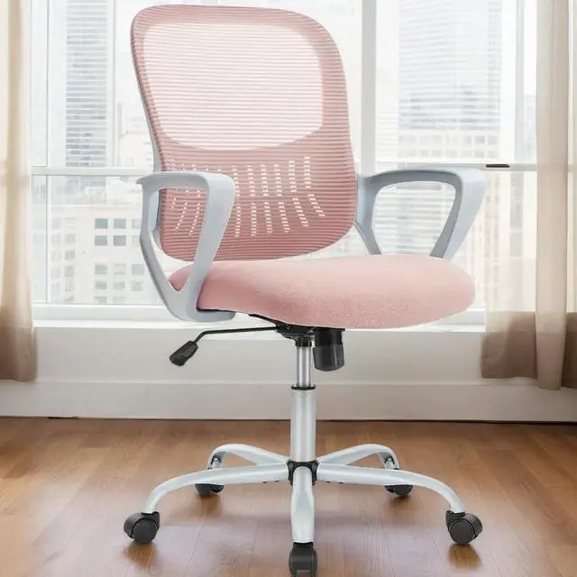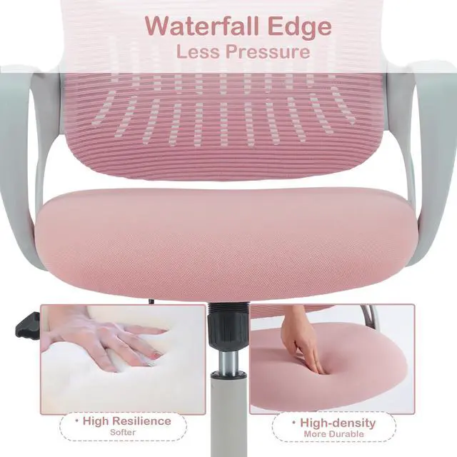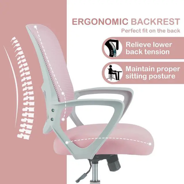 Office Ergonomic Desk Chair, Mesh Comfy Computer Work Chair with Armrests and Adjustable Lumbar Support, Rolling Swivel Executive Task Chair for Home Office, Adults and Teens (Pink)