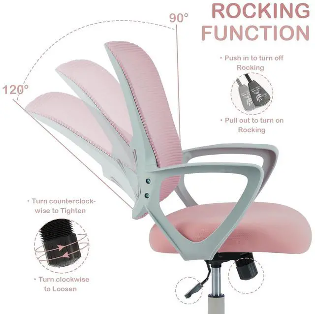 Adjustable Mesh Computer ChairOur home desk chairs feature a flexible seat height adjustment of 4 inches, with a unique recline function that allows the backrest to tilt up to 120°. This design provides a supportive embrace to help alleviate stress and fatigue.