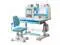 Upgrade Kid Desk and Chair Set, 50-Degree Tiltable Desktop Height Adjustable Kids Table and Chair Set with Bookshelf Storage Drawer for Bedroom Study Room (Blue B)