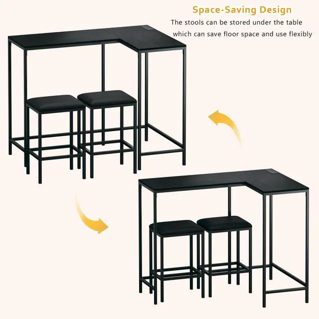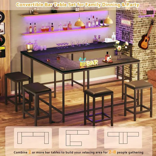 Convertible & Space-Saving Corner Bar Table: The L-shaped bar table is convertible and can be installed in Left/Right/Straight shape according