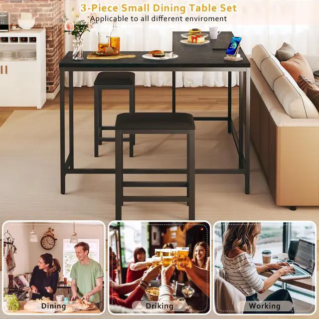 Stylish Bar Table with Power Outlets: Built-in 2 Outlets & 2 USB on the desktop, so you can charge your devices beside your hand and don't have to go to other places. You can enjoy entertainment devices when you are eating, or you can charge your laptop when you are working. Own this charming and practical bar height table, which can add more convenience to your daily life.