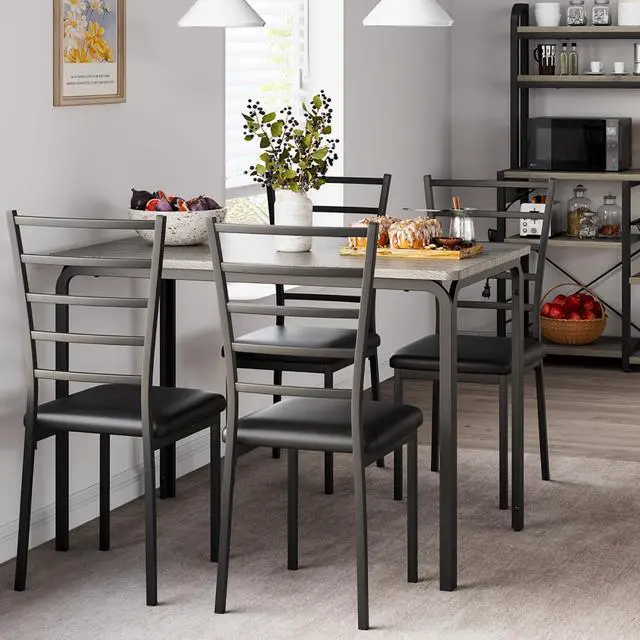 APARTMENT-SMALL-SPACE-FRIENDLY: Perfect for 4 people with a space-saving design; dining chairs can be neatly stored underneath the dinner table, making it ideal for kitchens, dining rooms, home offices, living rooms, bars, and breakfast nooks. This compact design maximizes space while maintaining an attractive appearance.