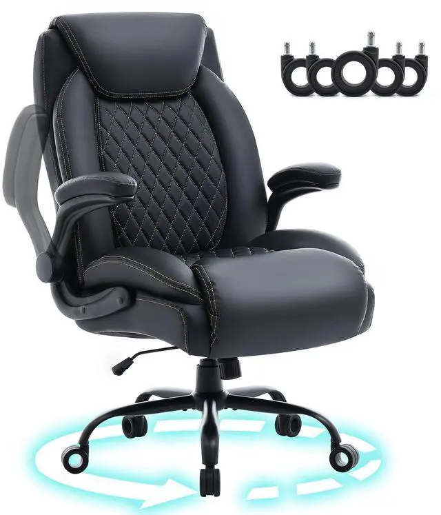 Big and Tall Office Chair 600lbs, Heavy Duty Ergonomic Executive Desk with Adjustable Armrests, Wide Seat, PU Leather Fabric, Adjustable Height, Comfortable Office Chair for Heavy People