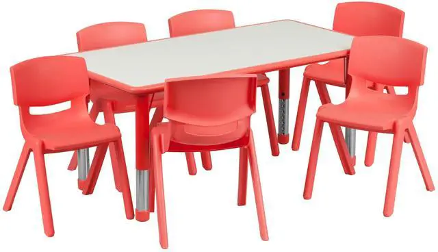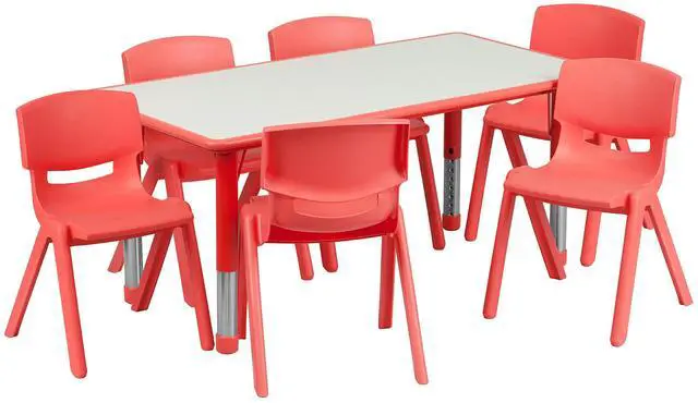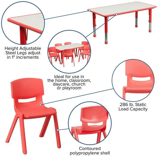 Create a fun space for kids to learn and play on this classroom table set for home and school applications to accommodate children from the ages of 2-6 years of age.