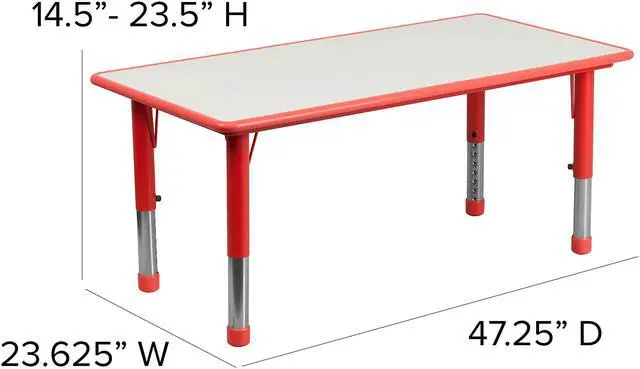 PRODUCT MEASUREMENTS: Table Size: 23.625"W x 47.25"L x 14.5-23.5"H; Chair Size: 12.625"W x 13.5"D x 20"H; Back Size: 11"W x 10.75"H; Seat Size: 10"W x 10"D x 10.5"H; Ships In Multiple Boxes