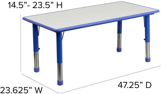 PRODUCT MEASUREMENTS: Table Size: 23.625"W x 47.25"L x 14.5-23.5"H; Chair Size: 12.625"W x 13.5"D x 20"H; Back Size: 11"W x 10.75"H; Seat Size: 10"W x 10"D x 10.5"H; Ships In Multiple Boxes