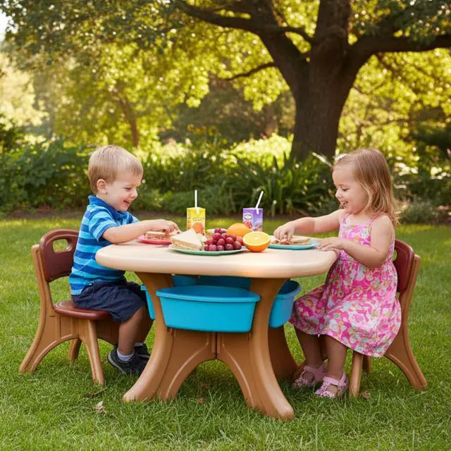 [Anywhere Fun for Kids]: Give your children their own table and chair set that's just their size! Seamlessly transitions between indoor and outdoor use equally at home in playrooms, living rooms, kindergartens, gardens, and patios. The ideal all-purpose kids table set for snacks, crafts, and learning activities, ready to adapt wherever your child wants to play! Table measures 27" × 27" × 20" and chair 13" × 13" × 20", recommended for ages 3 to 7.