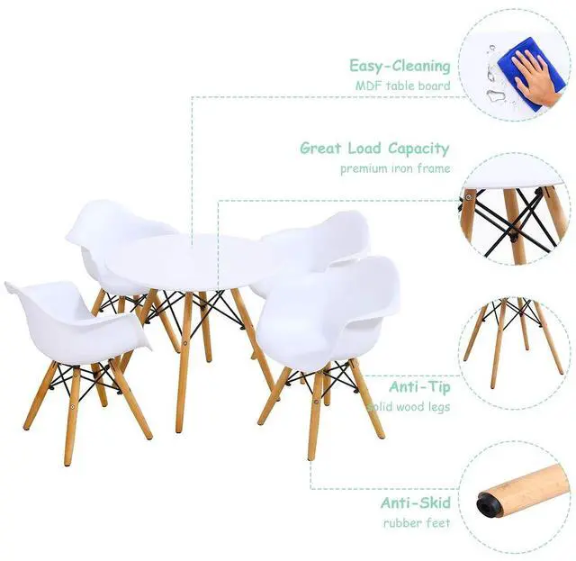 Costzon Kids Table and Chair Set, Mid-Century Modern Style Table Set Round Table with Armchairs for Toddler Children, Kids Dining Table and Chair Set (White, Table & 4 Chairs)