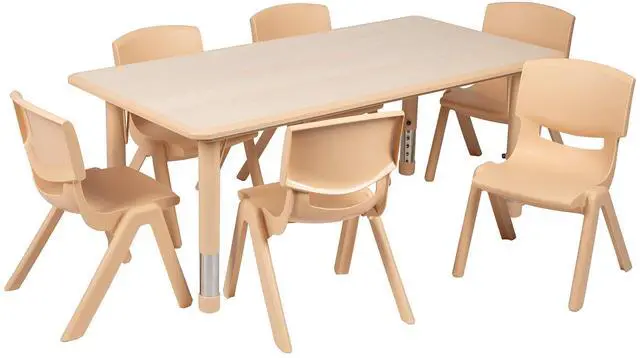 Create a fun space for kids to learn and play on this classroom table set for home and school applications to accommodate children from the ages of 2-6 years of age.