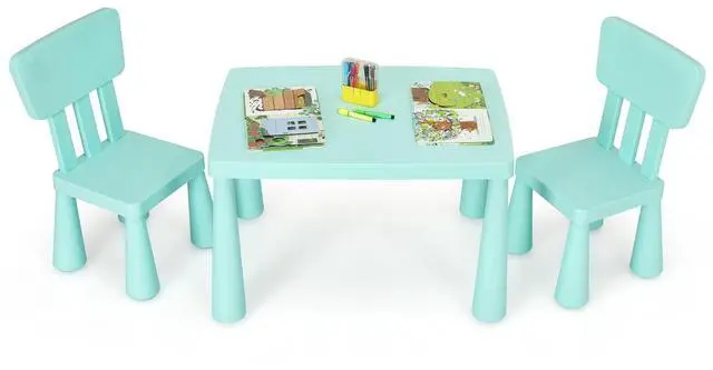 Costzon Kids Table and Chairs, 3 Piece Plastic Easy Clean Children Activity Desk for Reading, Drawing, Snack Time, Arts Crafts, Preschool, Kindergarten & Playroom, Toddler Table and Chair Set (Green)