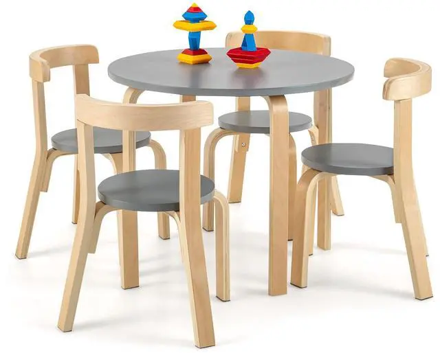 5-Piece Kids Table & Chair Set: Our kids table and chair set includes 4 chairs, a round table and additional toy bricks. It creates a comfortable environment for kids, such as eating, drawing, playing and learning. With this table and chair set, your kids are allowed to enjoy spending time with their best friends.