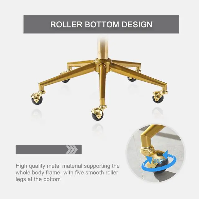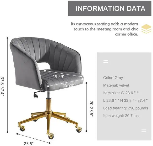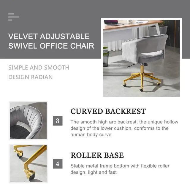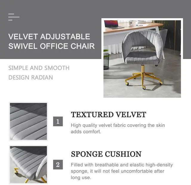 Velvet Home, Adjustable Swivel office chair with Gold Base, home office Desk Chair for Living Room, Bedroom, Vanity, Study (Grey)
