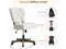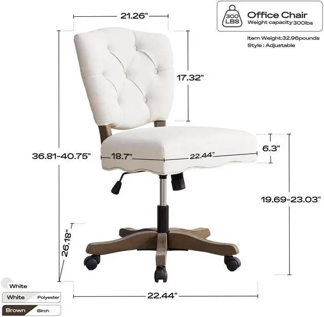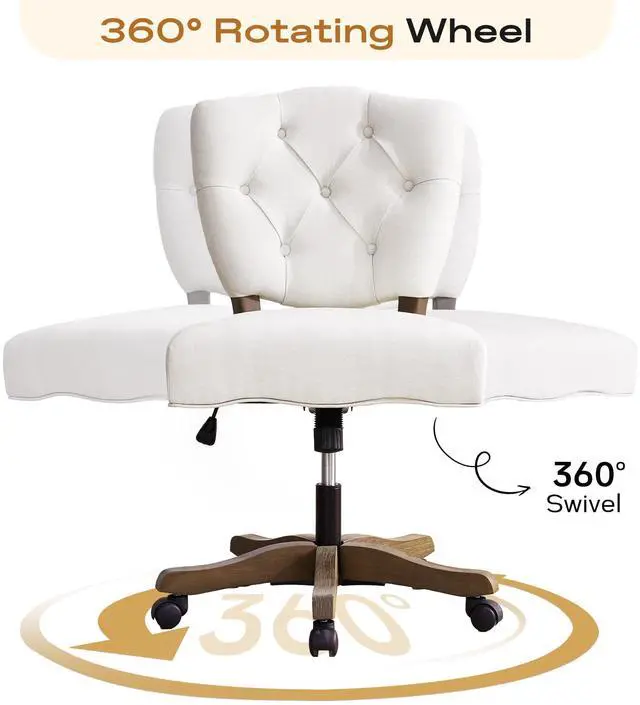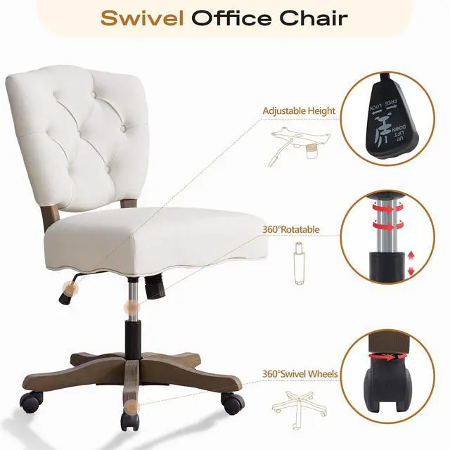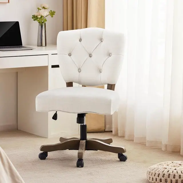 HUIMO Upholstered Swivel Desk Chair Chenille Tufted Fabric Home Office Chair with Wheels Adjustable Height Classic Task Chair with Wooden Legs Comfortable Armless Chair for Studio Study (Beige)