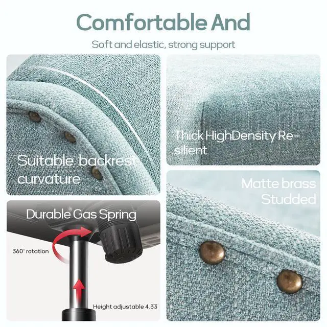 Comfortable Office Chair: The white office chair is made of skin-friendly and resilient linen fabric, equipped with a double-layer sponge seat cushion, and the wide office chair backrest and independent lumbar support gently surround your body and support your lumbar area, making it ideal for long hours of sitting without fatigue
