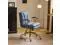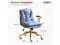 VINGLI Home Office Desk Chair Comfy with Wheels & Armrests,Gold Base Vanity Chair with Back,Adjustable Rolling Swivel Computer Task Chair for Study,Home Office,Cat Scratch PU,Navy Blue