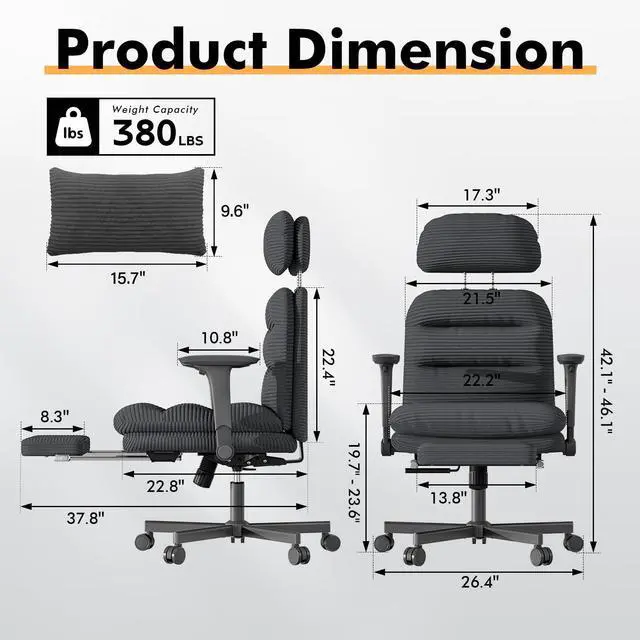 Office Chair with Lumbar Pillow and Footrest: The stylish office chair with footrest allows you to stretch out and rest comfortably, lumbar pillo