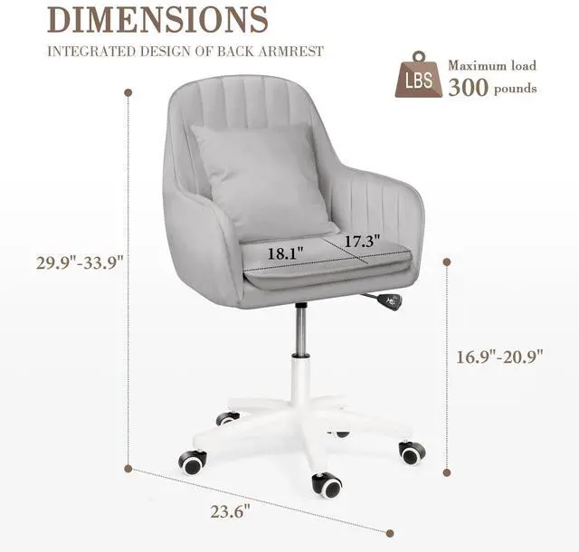 Plush Comfort for All-Day: Upholstered in ultra-soft, skin-friendly velvet material, this desk chair offers a luxurious touch and a cozy seating experience. The included matching throw pillow provides extra lumbar and neck support, making it ideal for remote workers, students, and anyone spending long hours at their desk.