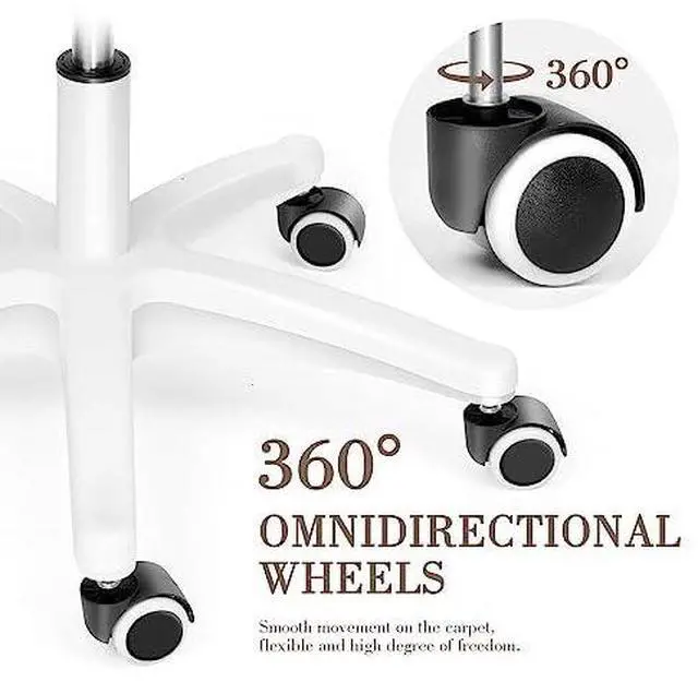 Smooth-Rolling Casters for Easy Mobility in Any Setting: Equipped with five smooth, durable caster wheels, this rolling office chair glides effortlessly across hardwood floors, tile, and low-pile carpets. The wheels are designed to be quiet and non-marking, protecting your flooring, making it suitable for both professional office environments and home use.