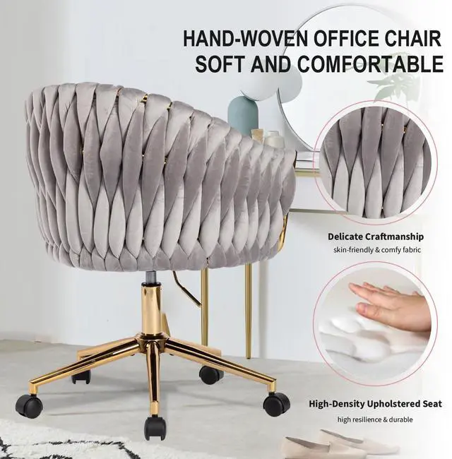 Height Adjustable Home Desk Chairs: This vanity chair is designed with a height-adjustable feature that caters to your specific needs, ensuring you achieve the perfect seated position for your beauty rituals. Whether you're applying makeup or working at your desk, find comfort and style with ease. Its smooth 360-degree swivel capability allows you to access your surroundings effortlessly, making it ideal for multitasking, whether in the beauty studio or home office
