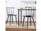 SPINDLE-BACK CHAIRS: Two ergonomic chairs feature a curved backrest for support, with a unique spindle-back design, crafted with durable metal legs and engineered wood for stability