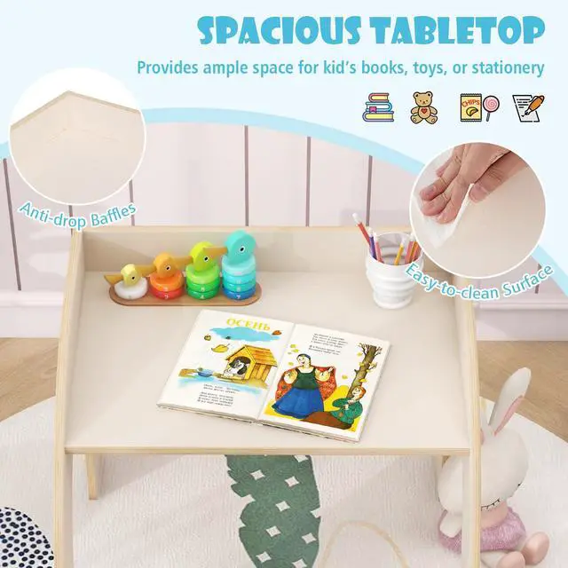 [ Spacious Tabletop and Safety Design ]: The spacious tabletop provides ample space for kids books, toys, or stationery. There are anti-drop baffles to protect kids items from falling down from the table. The round and smooth edges prevent bumping or scratching.