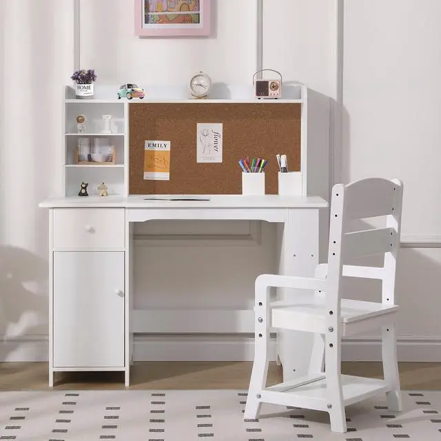 Ample Storage Capacity: Our desk set features generous storage options, including open storage, a bookshelf, cabinets, and a cork board. Easily organize and store personal items like photo frames, alarm clocks, mini plants, dolls, and books.