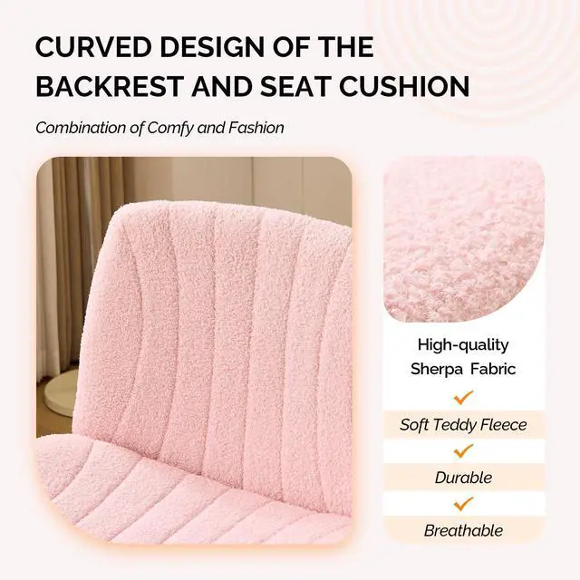 Teddt Fleece Chair: With its sleek curved design and plush fabric, this cross-legged office chair is cozy and style, giving a warm feeling for chilly days, enduring softness ensures a cozy embrace with every use, and the sturdy base holds up to 330 pounds with SGS-certified lifting cylinders for the ultimate in reliability. Whether in a snug corner or as a statement piece, this vanity chair with back transforms any space into a haven of warmth and comfort.